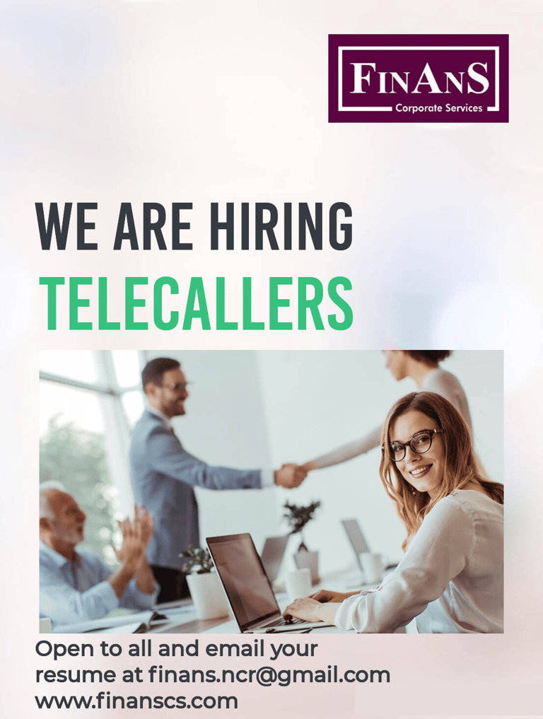 Finans is looking for tele-callers. Hindi and English language expertise is a pre-requisite. Attractive salary and high incentive. Salary no bar for right candidate. Team leader position also available.